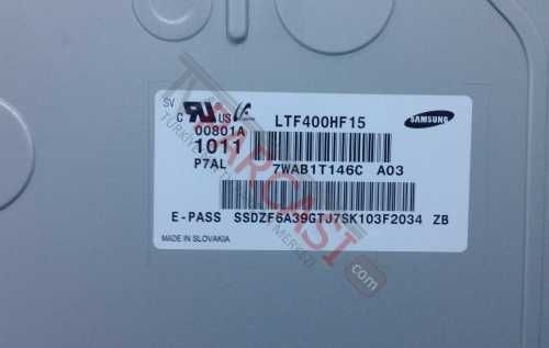 Ürün Bilgisi Parça Türü: Samsung LCD TV Paneli Bilinen Marka/Model: Samsung Tv Panel Modeli: LTF400HF15 T-Con Bord No: S120APM4C4LV0.4 İnverter Board No: SSB400_12V01 Rev0.3
